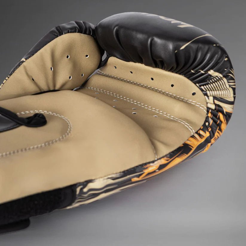 El impactante diseño de los guantes de boxeo Venum Tiger captura la ferocidad desbordante de un felino salvaje en plena cacería. Son los guantes perfectos para atletas con un toque salvaje.
